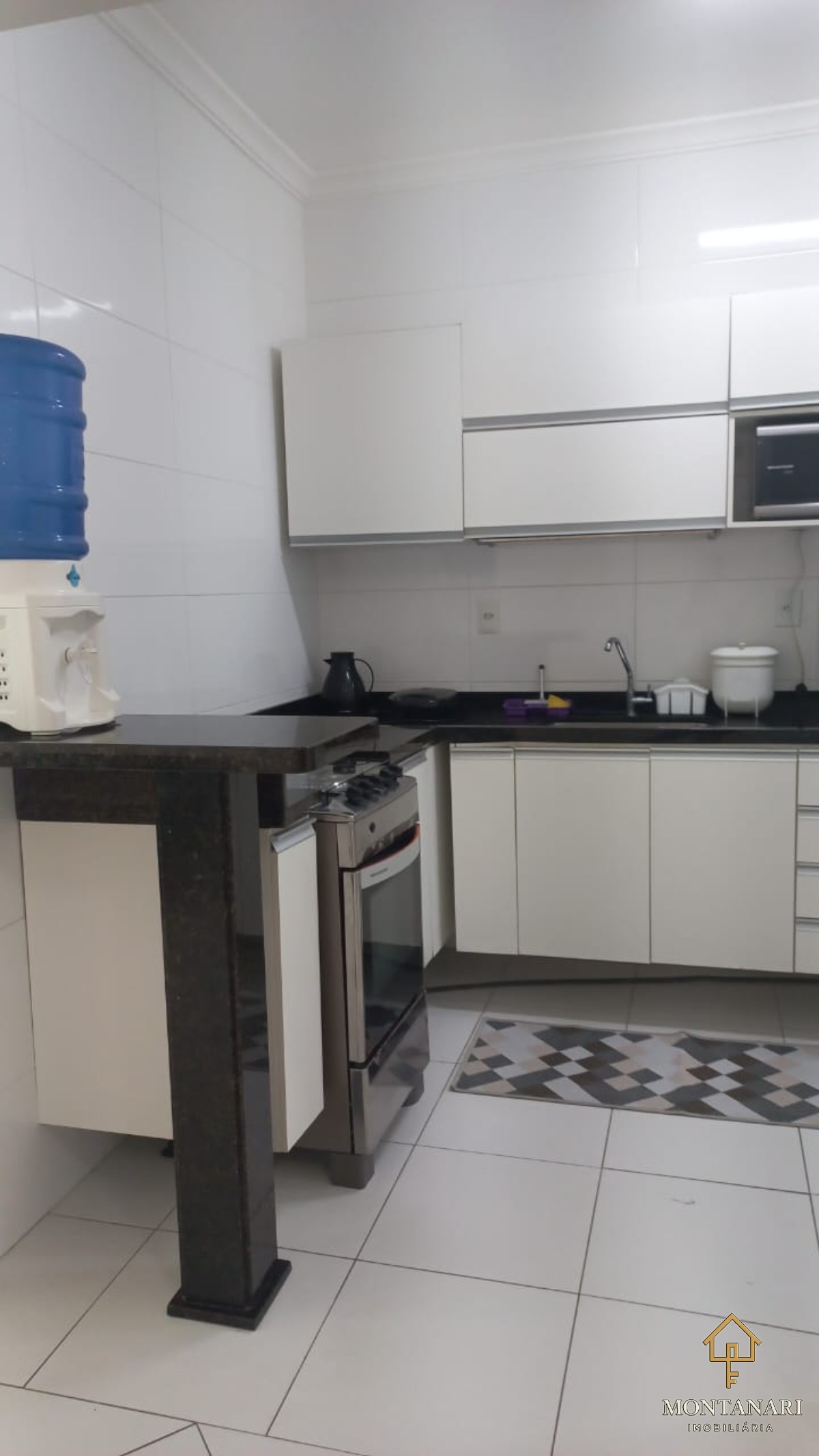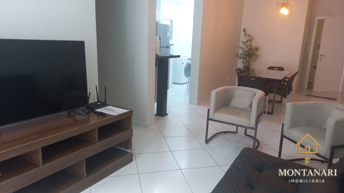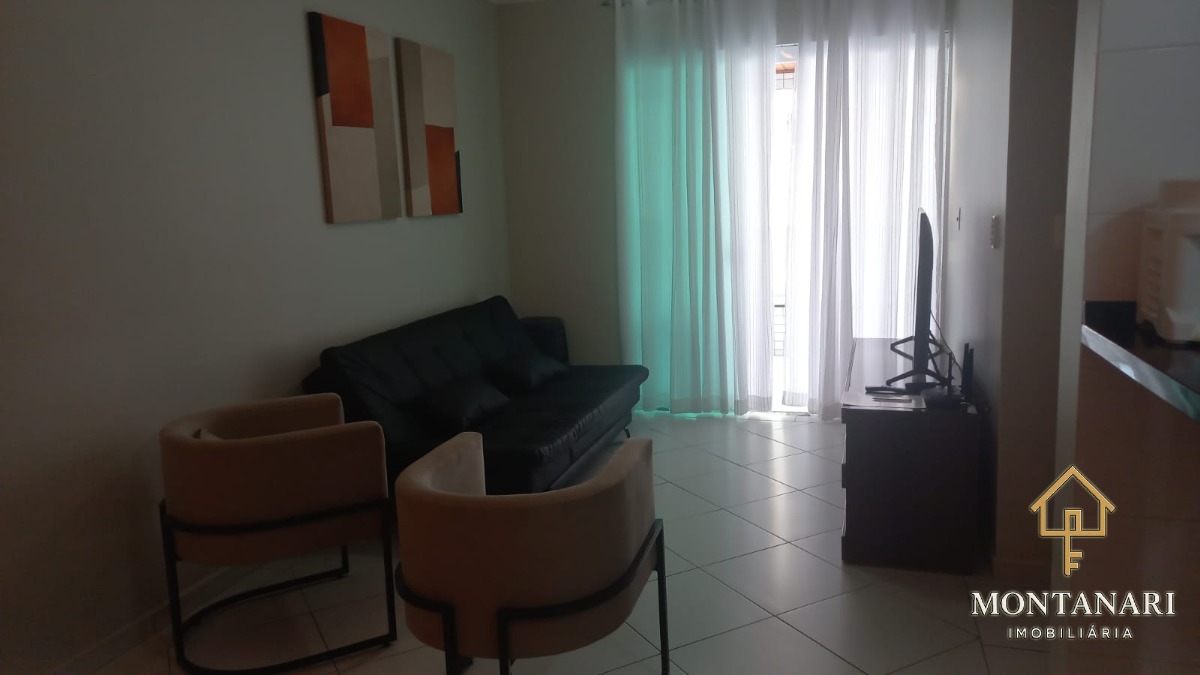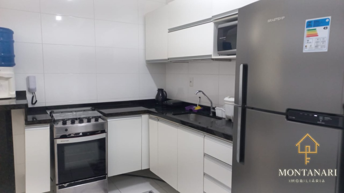 O apartamento é mobiliado e conta com armários embutidos, além de uma cozinha equipada com armário de cozinha.